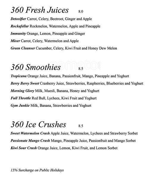 Menu of Three Sixty Grand Hotel, Labrador, Gold Coast