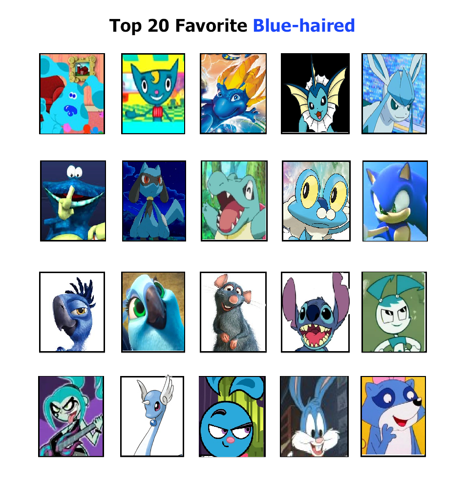 my top 20 favorite blue haired characters by cartoonstar92 on DeviantArt