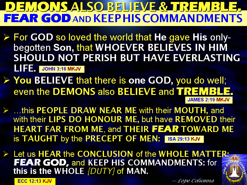 The BIBLE EXPLAINER & REVELATOR Q679 The DEMONS ALSO BELIEVE IN CHRIST (James 219). Will They