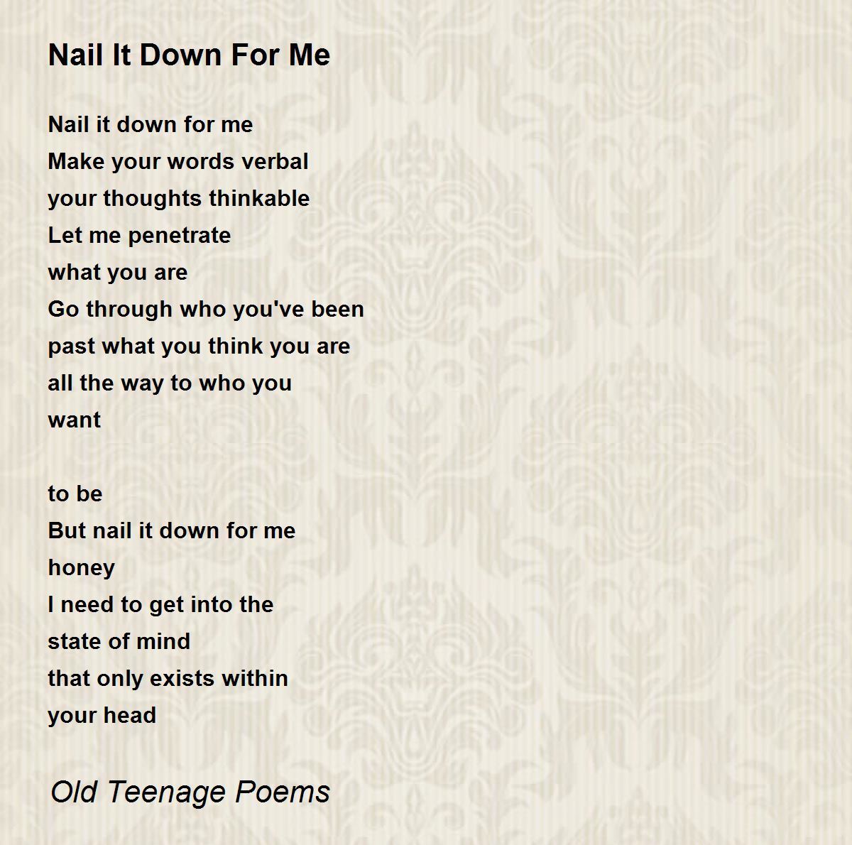 Nail It Down For Me Poem by Old Teenage Poems Poem Hunter
