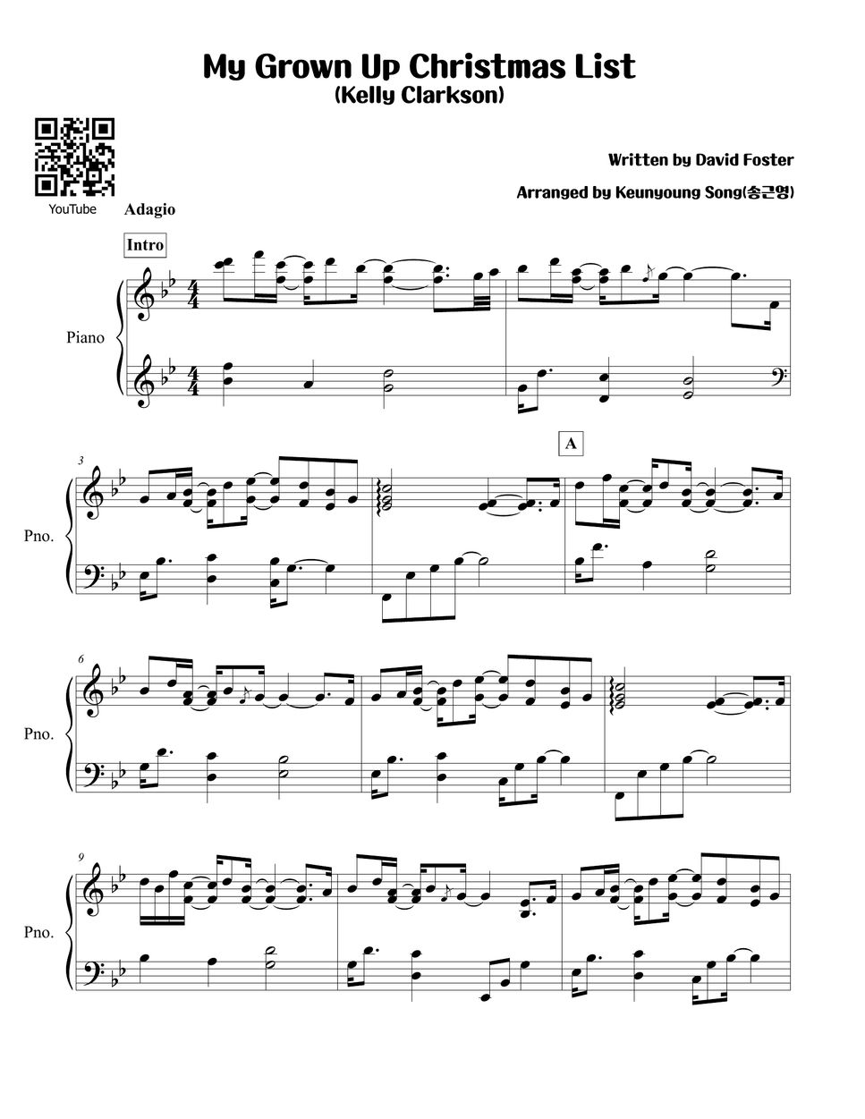 Kelly Clarkson My Grown Up Christmas List Sheet by Pianist Keunyoung Song(송근영)