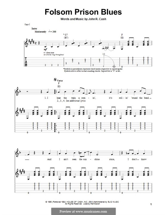 Buy "Folsom Prison Blues" Sheet Music by Johnny Cash for Guitar Tab