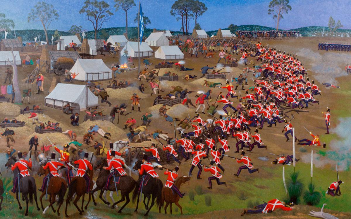 The Battle of the Eureka Stockade was fought in Ballarat, Victoria between gold miners and Colonial forces in 1854.