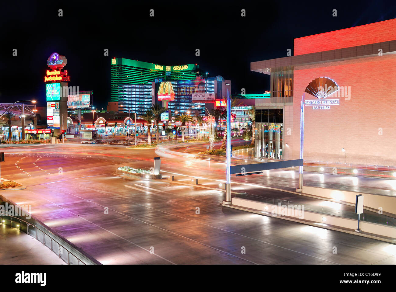 Polo Towers und MGM Grand Hotel and Casino, Las Vegas, mit beleuchteten Straße und Verkehr