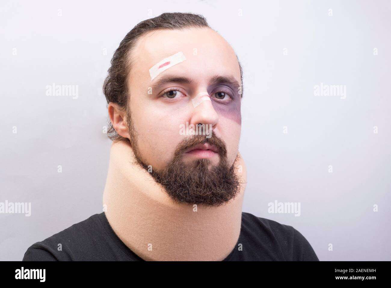 Retrato De Un Hombre Joven Que Lleva El Cuello Cervical Foto de archivo Imagen de blanco