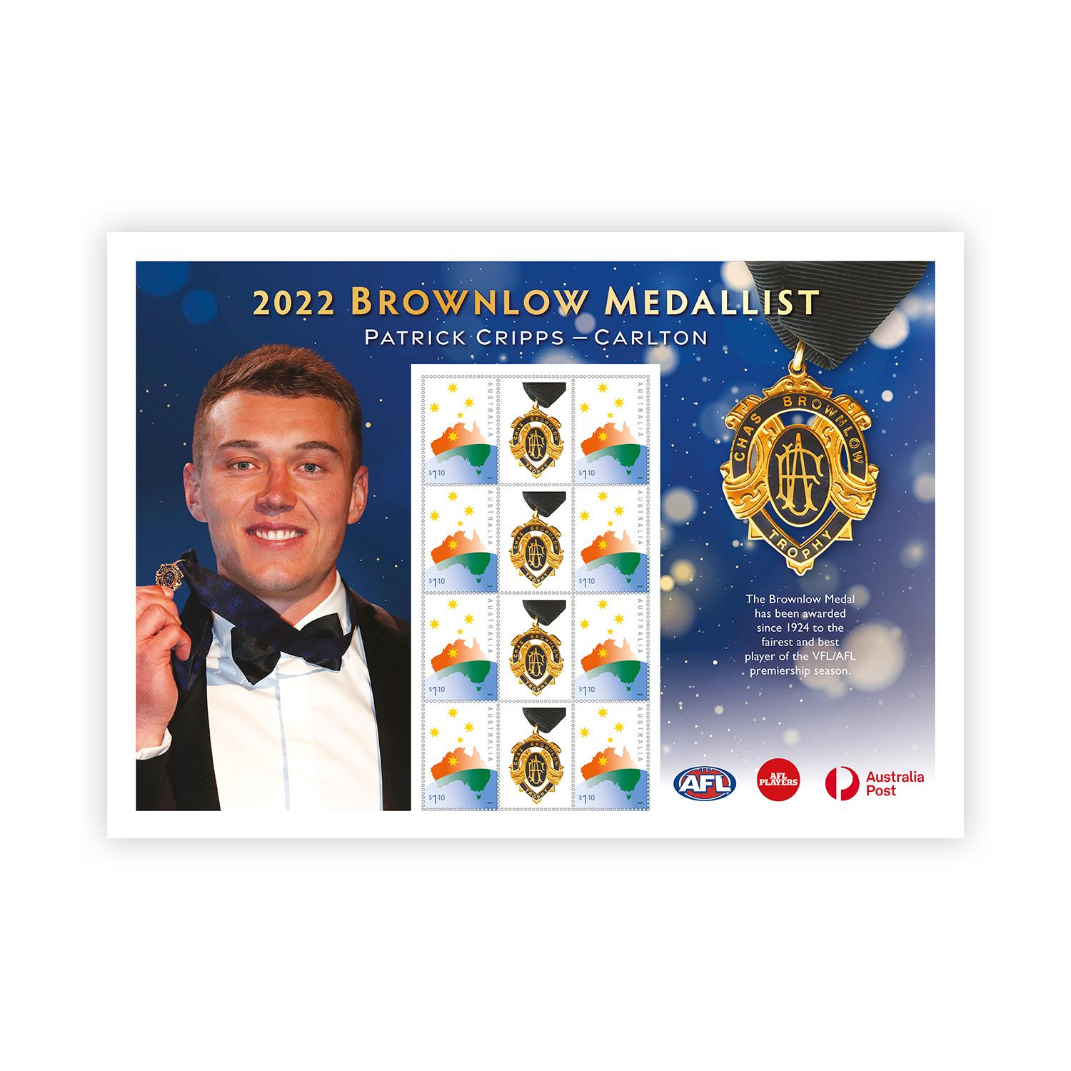 2022 Brownlow Medallist Patrick Cripps Souvenir Stamp Sheet AFL